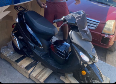 The stolen bike is a black 2021 Tao motor scooter (Florida license plate: 10BAL). The actual bike is pictured here.